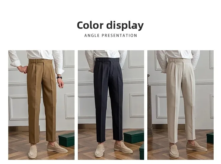 Crafted from premium fabric, they deliver the perfect balance between structure and fluidity, ensuring freedom of movement without compromising their polished appearance. The waistband provides a precise and comfortable fit, making them ideal for formal occasions, work routines, or sophisticated social settings.