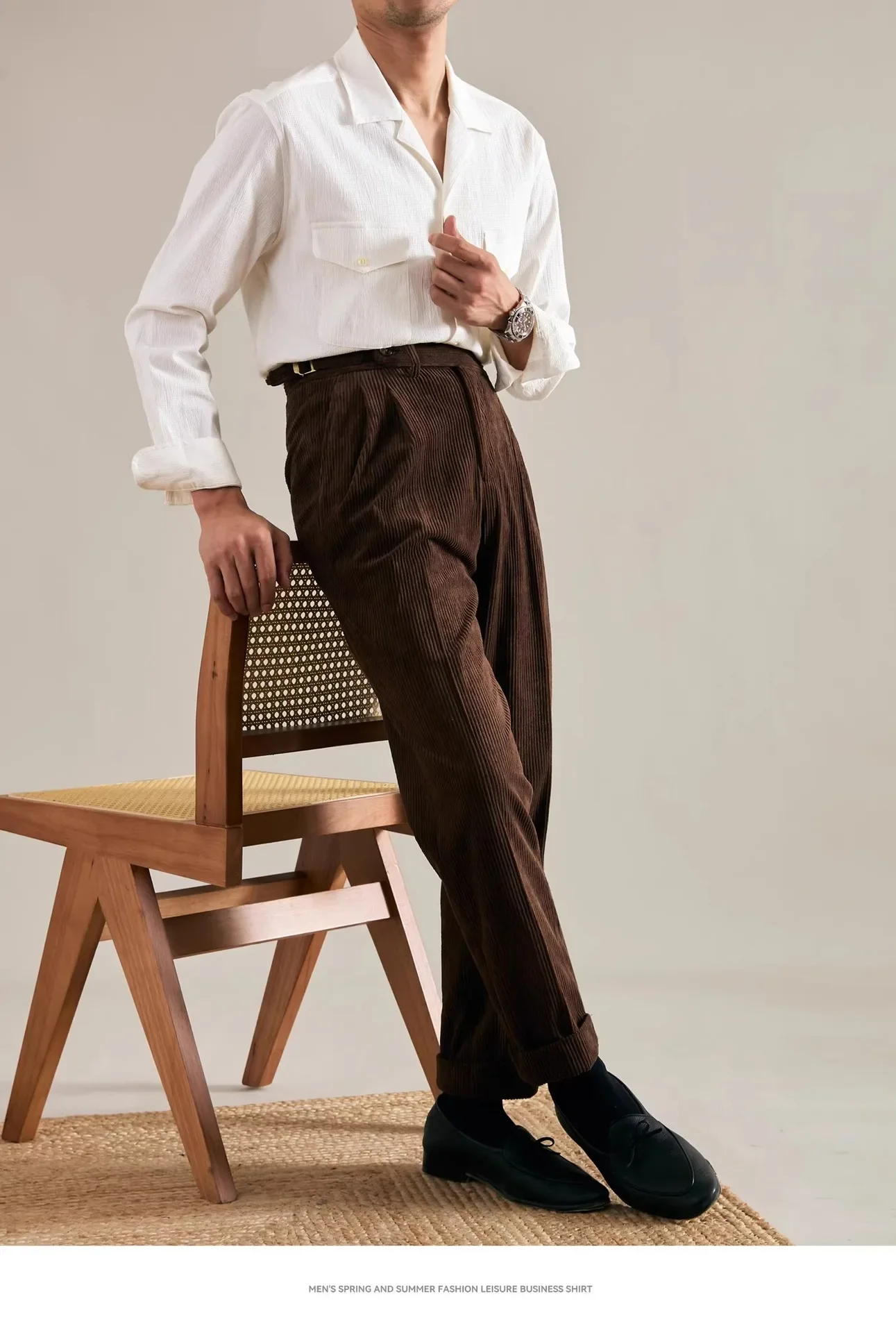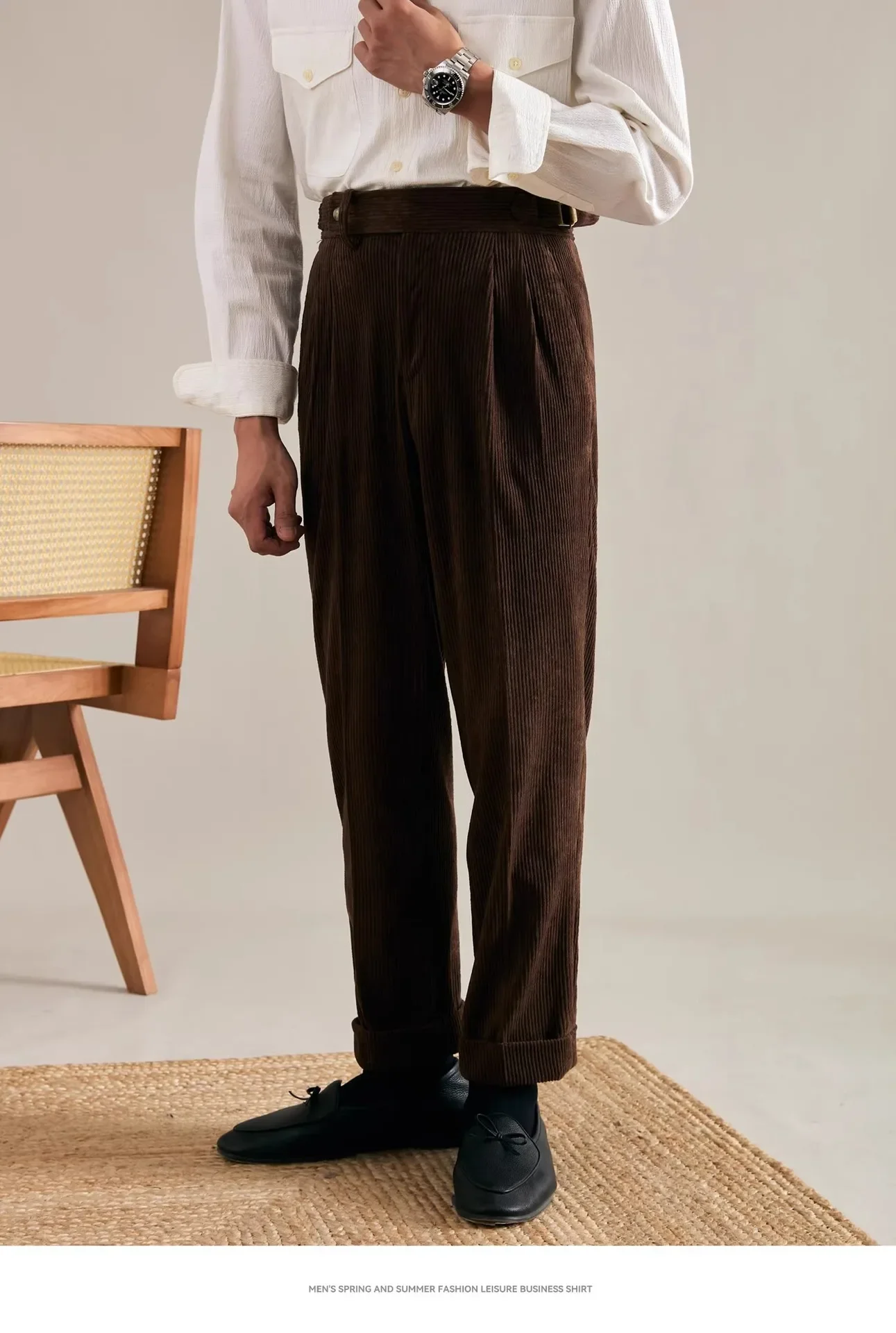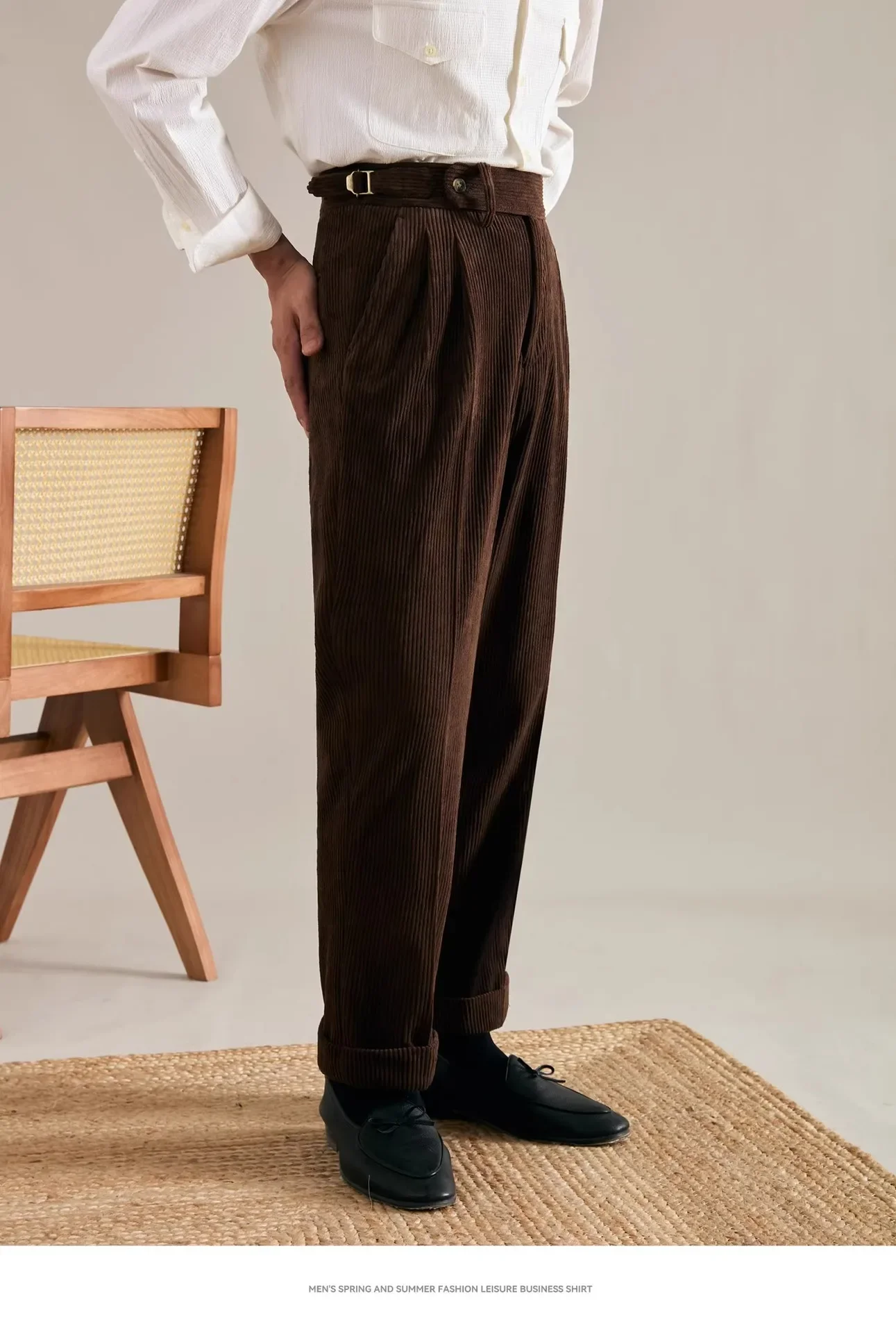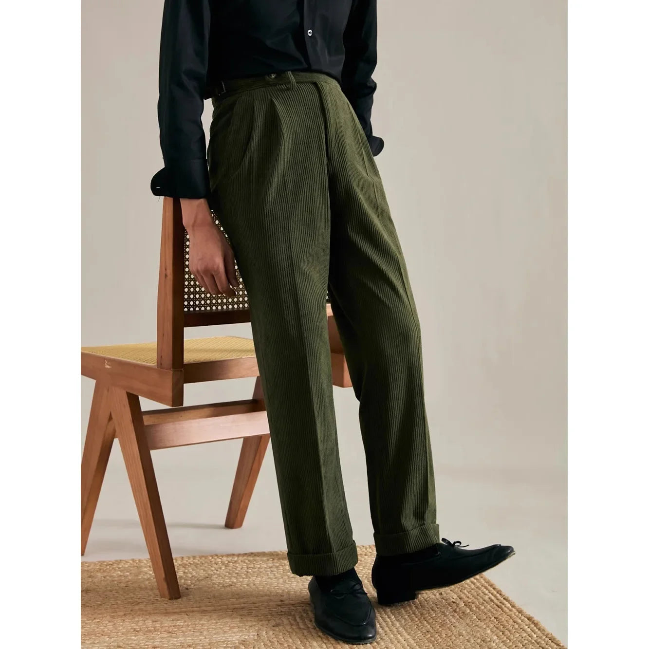 Designed with a relaxed, noble fit, they offer a subtle sense of ease while maintaining a dignified profile. Perfect for pairing with button-down shirts, wool knits or structured blazers, they elevate any ensemble with a touch of heritage charm.